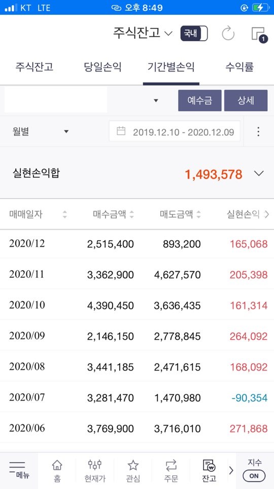 금리 때문입니다. ㅎㅎ 양적완화에 유동성 확대 등등 정부긴급지원 등의 미국 흐름에 따라 금리가 1천원 선까지 떨어질 것으로 보므로 저는 계속 적자겠죠...